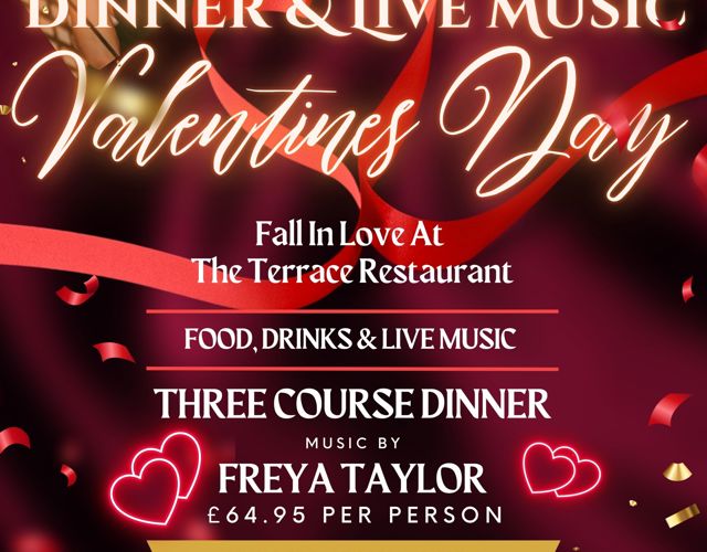 It’s the time of year to spoil the one you love. Spend time together over a romantic dinner and live music. Join us for a Romantic 3 course Dinner on Saturday 14th February